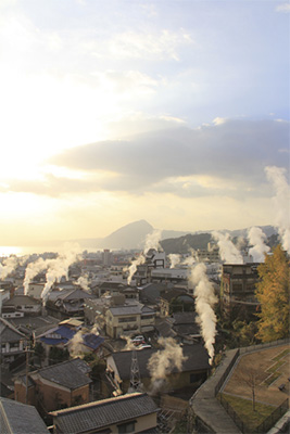 年間834万人の観光客、第3次産業の事業所9割超、世界各国からの留学生数3,000人超の国際観光温泉文化都市です。