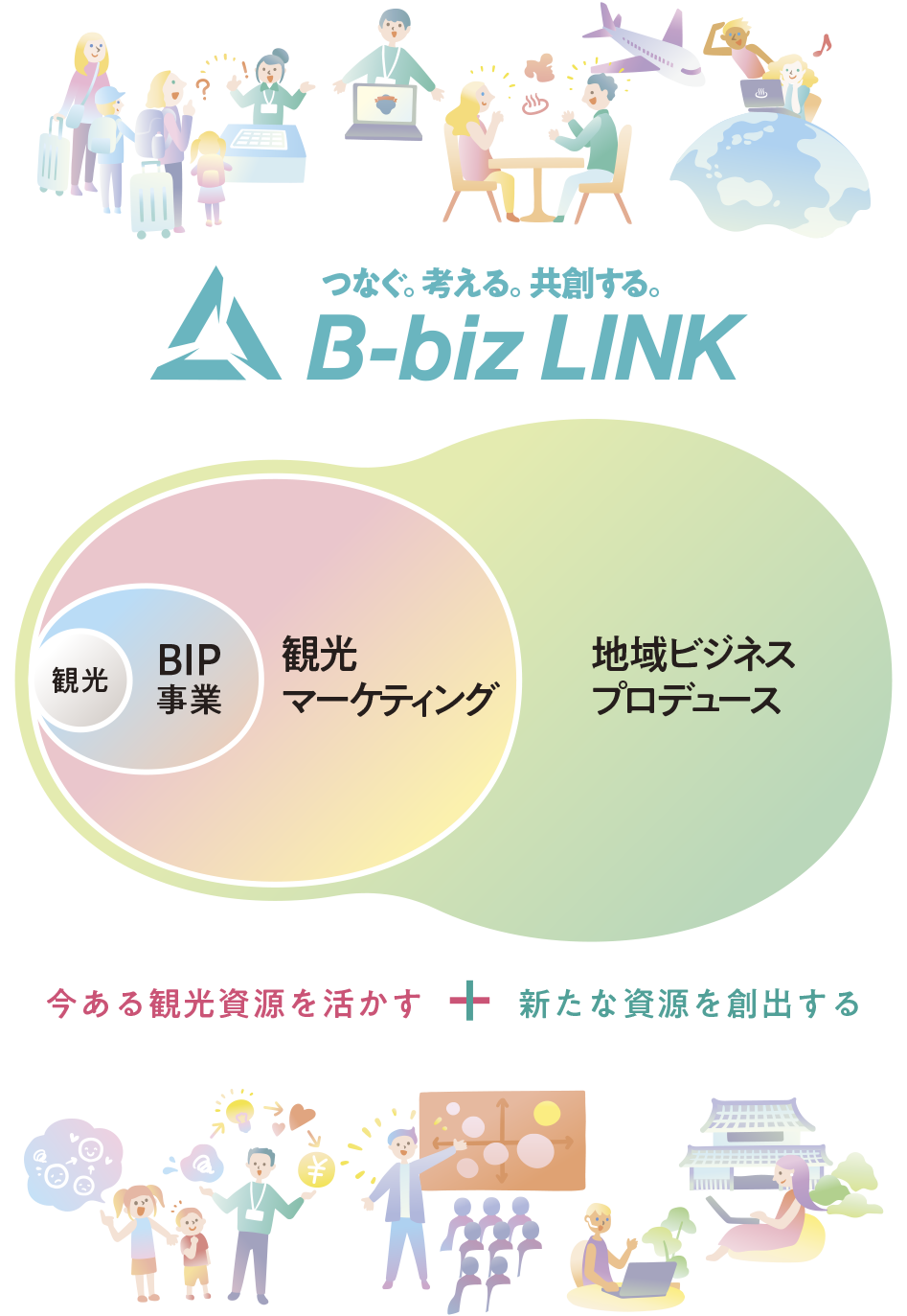 私たちB-bizLINKは、別府をフィールドに魅力ある都市づくりを行い、様々なプレイヤーや企業との共創により新たなビジネスを別府に創出し、持続可能な別府の未来を創造することを目指しています。