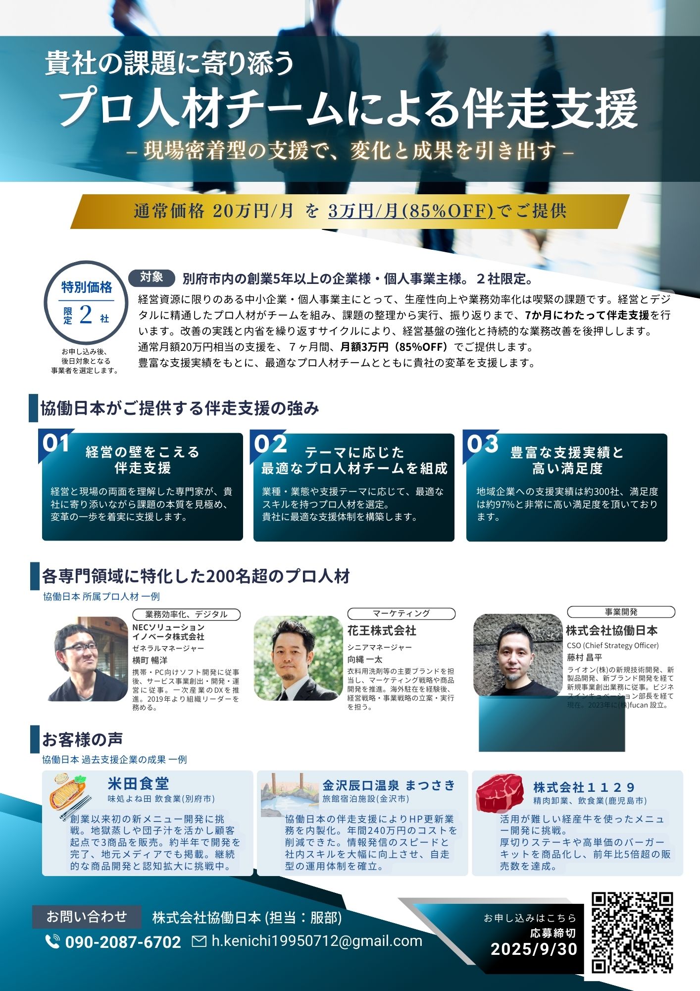対象:別府市内の創業5年以上の企業様・個人事業主様(2社限定)