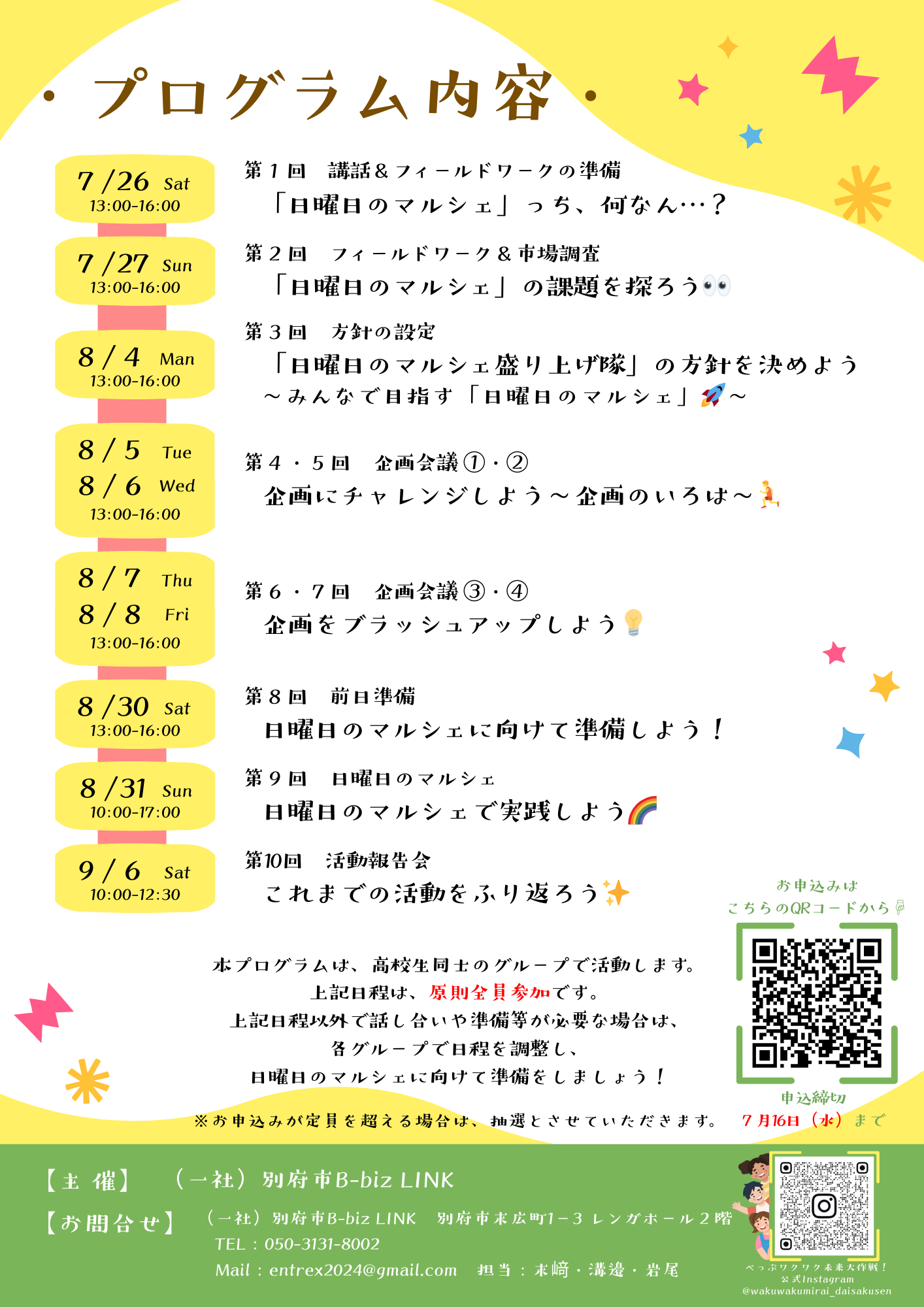 🔶対 象:別府市内の高校生(※原則、すべての日程に参加可能な方)