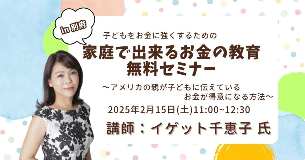 2025.2.15 開催 子どもをお金に強くするための「家庭で出来るお金の教育無料セミナー」~アメリカの親が子どもに伝えているお金が得意になる方法~